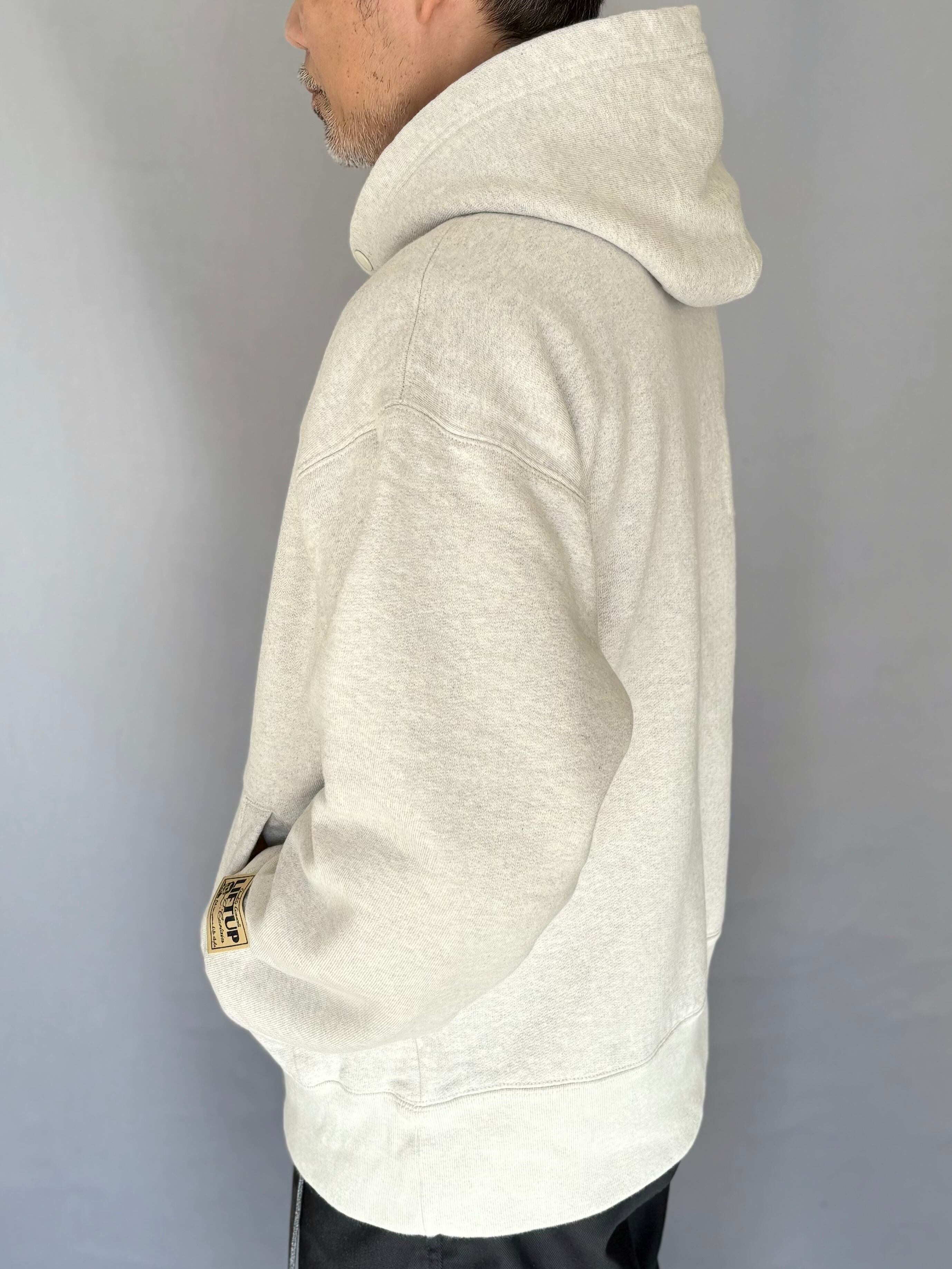 たっぷりとした身幅と太めのアームで、昔ながらのスウェットらしいざっくりとしたシルエットに。